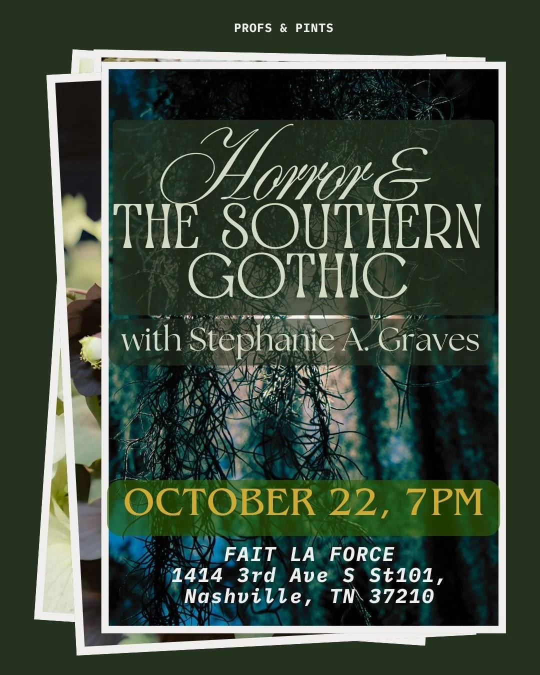 What makes the Southern Gothic so haunting, and how does it intersect with horror? In this talk, Stephanie Graves, a scholar of horror and the Gothic, will explore how the Southern Gothic acts as part genre, part style, and part setting that explores our haunted regional past. The Southern Gothic has persisted in the American imagination, weaving together decaying landscapes, grotesque characters, and the supernatural. This talk will explore the Southern Gothic as a stylistic mode, considering its influence within broader horror traditions. While classic Gothic literature found its origins in the castles and abbeys of Europe, the Southern Gothic relocates these tropes to the haunted landscapes of the American South. It persists through reiterations of the past and the inescapable presence of what lies buried—whether literally in the grave or figuratively in cultural memory.